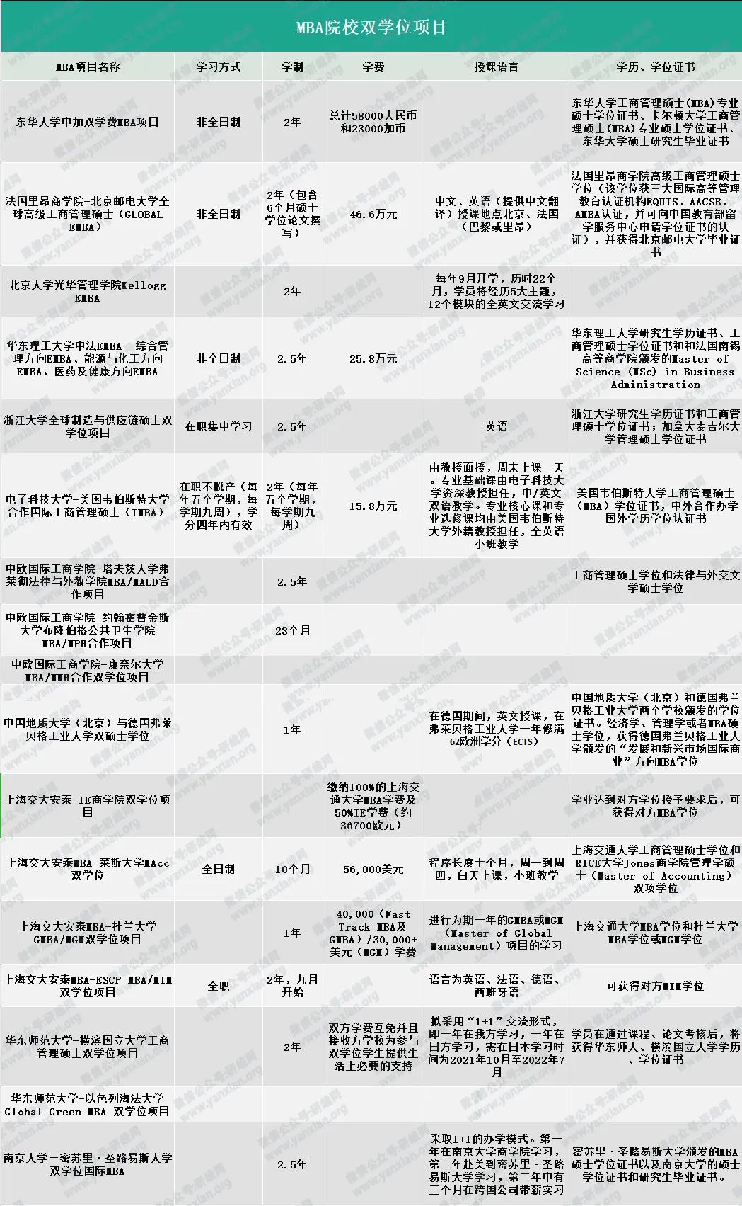 還有下列MBA雙學位項目,具體項目介紹可以去官網(wǎng)查看哦