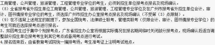 單獨(dú)考試及工商管理、公共管理、旅游管理和工程管理等專業(yè)學(xué)位的考生應(yīng)選擇招生單位所在地省級教育招生考試管理機(jī)構(gòu)指定的報考點辦理網(wǎng)上報名和現(xiàn)場確認(rèn)手續(xù);