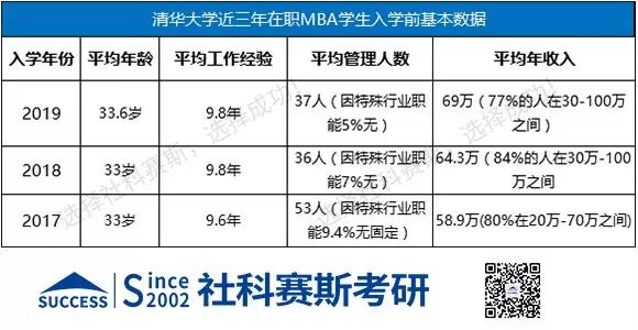 你關(guān)心的你的條件是否符合,我們從清華大學(xué)官網(wǎng)公布的《2019級在職MBA學(xué)生入學(xué)前基本數(shù)據(jù)》來看一下。此處,需要注意的是,以下數(shù)據(jù)為平均值,僅做參考。