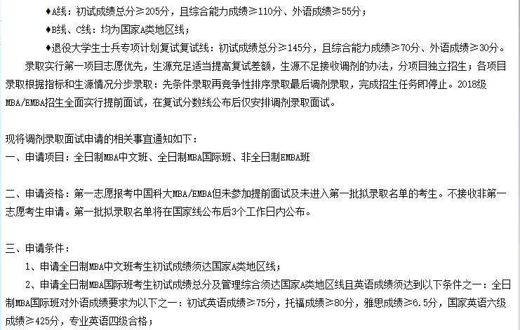 4.MBA:國民教育序列博、碩研究生畢業后工作2年或本科畢業后工作3年或專科畢業后工作5年及其以上(工齡計算至2020年8月31日)。報考國際班考生還須英語成績滿足以下條件之一:
