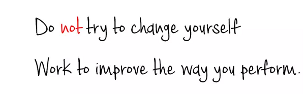 "Do not try to change yourself—you are unlikely to succeed. Work to improve the way you perform."
