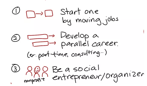 這意味著人們需要找到一個能夠有機會成為領袖、受到尊重、取得成功的第二領域——可能是第二份職業,也可能是平行的職業或社會創業。