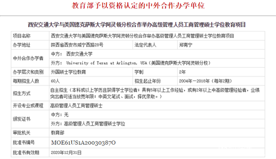 3、西安交通大學(xué)-德克薩斯大學(xué)阿靈頓分校合作EMBA項目