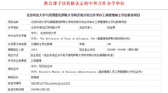4、北京科技大學(xué)-德克薩斯大學(xué)阿靈頓分校合作EMBA項目