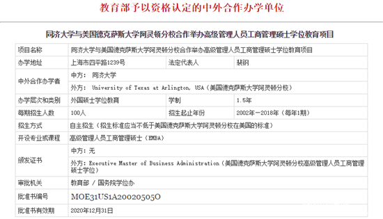 6、同濟大學(xué)-德克薩斯大學(xué)阿靈頓分校合作EMBA項目