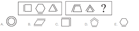 5.如下兩套圖形具有某種相似性,也存在某種差異。請從五個選項中選擇你認為最適合的圖形取代問號,使 得兩套圖形表現出最大的相似性,且第二套圖形也表現出自己的特征。