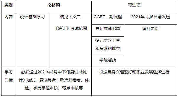 2020年11月聯(lián)考網(wǎng)上報名且確認高金MBA項目的考生,都將獲得免費學習CGFT一期課程的權(quán)利(不含教材和考試費用),這也是SAIF MBA先導學習模塊的一部分,旨在為明年9月正式開學做好學習上的準備。學生可以根據(jù)自己的興趣,能力和實際職業(yè)需要,選擇性地學習這個模塊的課程。