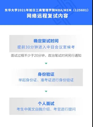 2021MBA復試:東華大學2021年旭日工商管理學院MBA/MEM網絡遠程復試平臺操作指南”,更多相關信息,請持續關注本網站!