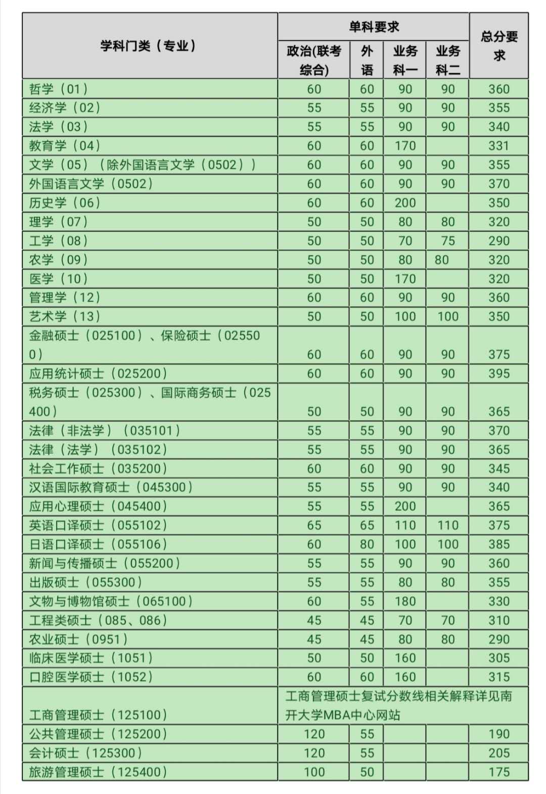 2020年南開大學碩士研究生復試分數線