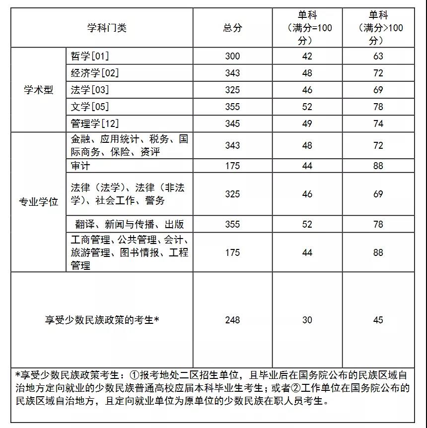 繼2020考研國家線公布后,34所自主劃線院校也陸續(xù)公布2020年復試分數(shù)線,西南政法大學已經(jīng)公布2020年碩士研究生入學考試復試基本分數(shù)線,如下所示: