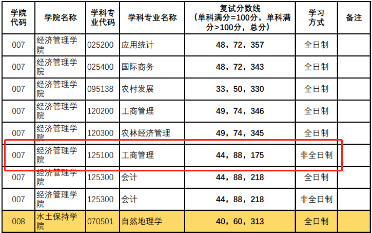 北京林業大學2020年MBA復試基本分數線:175/44/88