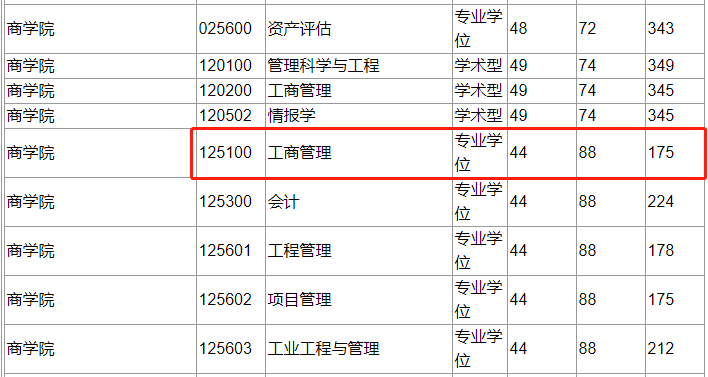 河海大學2020年MBA復試基本分數線:175/44/88;