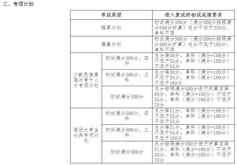 4.對于報考退役大學(xué)生士兵專項計劃考生,按照教育部下達給我校的招生計劃以及考生初試成績與報考專業(yè)的吉林大學(xué)復(fù)試分?jǐn)?shù)線的差值擇優(yōu)確定復(fù)試名單。“線差”相同時,按照外語、政治、業(yè)務(wù)課的順序按單科成績排序。