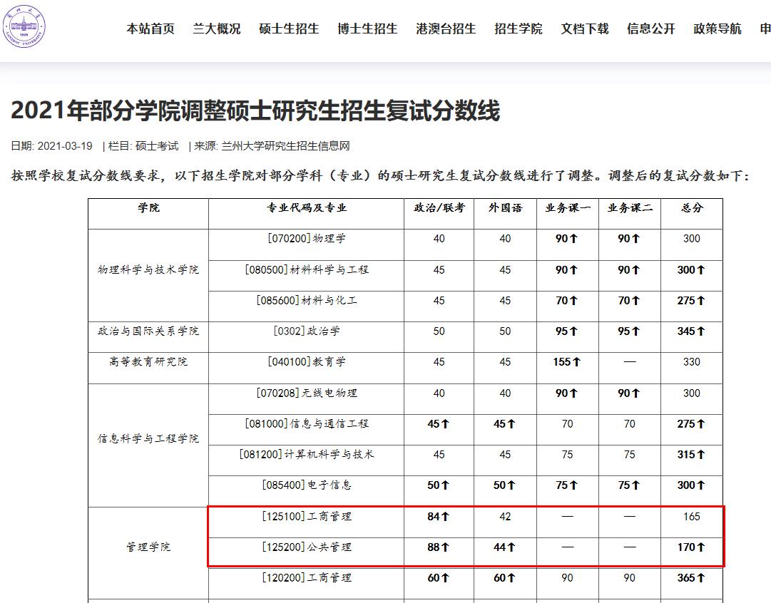 導讀:眾所周知,2021考研成績公布后,對于考研國家線及報考院校分數線也是非常期待的,其中34所自劃線院校復試分數線是考生關注和參考重點,按照往年規律,34所自劃線院校復試分數線公布時間要稍早于考研國家線。所以小編整理了“2021MBA34所自主劃線院校復試分數線:蘭州大學MBA復試分數線_復試時間_國家線公布!!”的內容,各位考生了解一下~