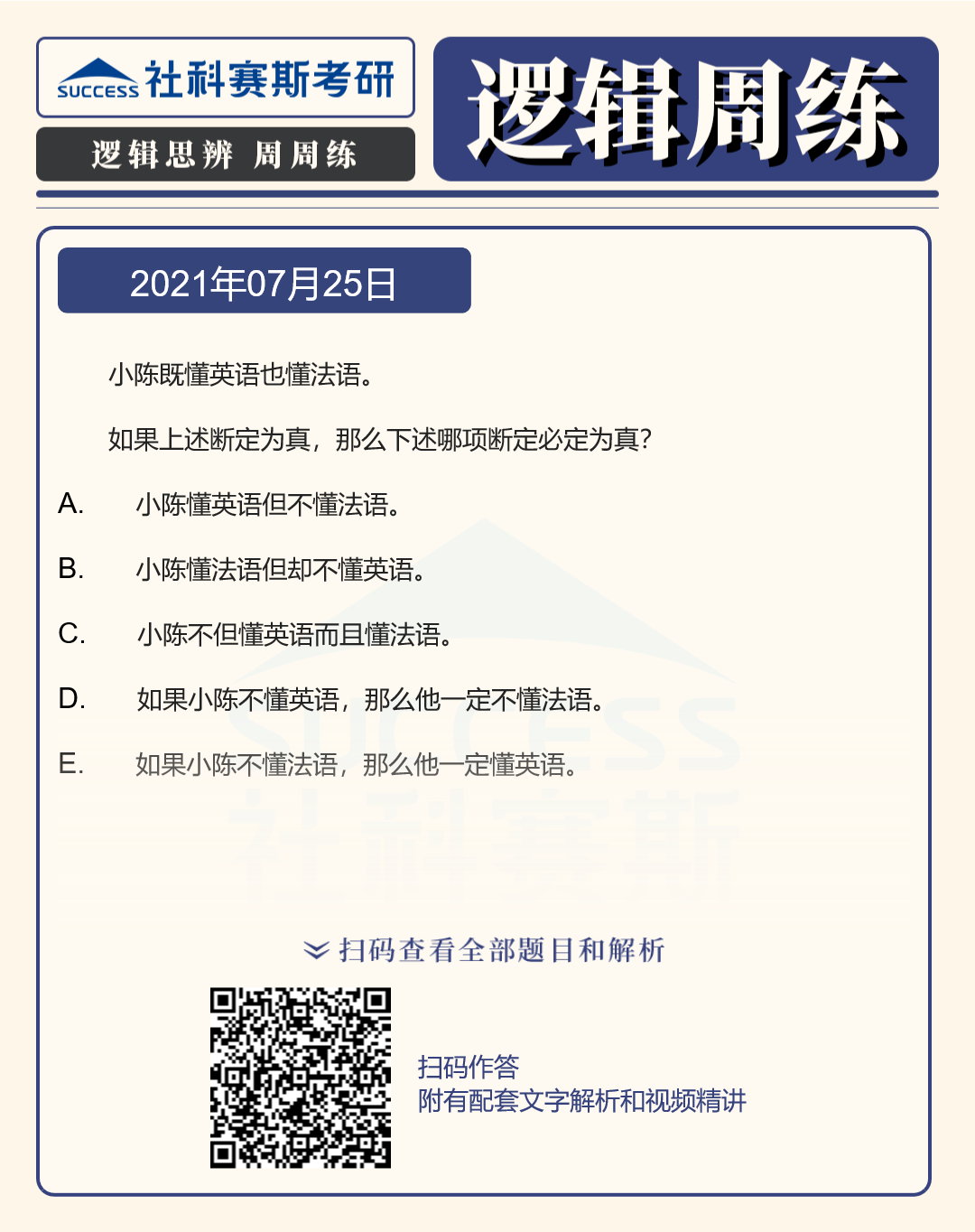 以上就是“2022MBA邏輯:2022MBA聯考邏輯習題及答案解析(7月25日)”的全部內容,更多邏輯精選習題,請持續關注社科賽斯MBA備考網!