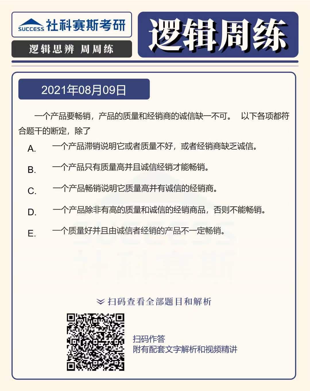 以上就是“2022MBA邏輯:2022MBA聯考邏輯習題及答案解析(8月9日)”的全部內容,更多邏輯精選習題,請持續關注社科賽斯MBA備考網!