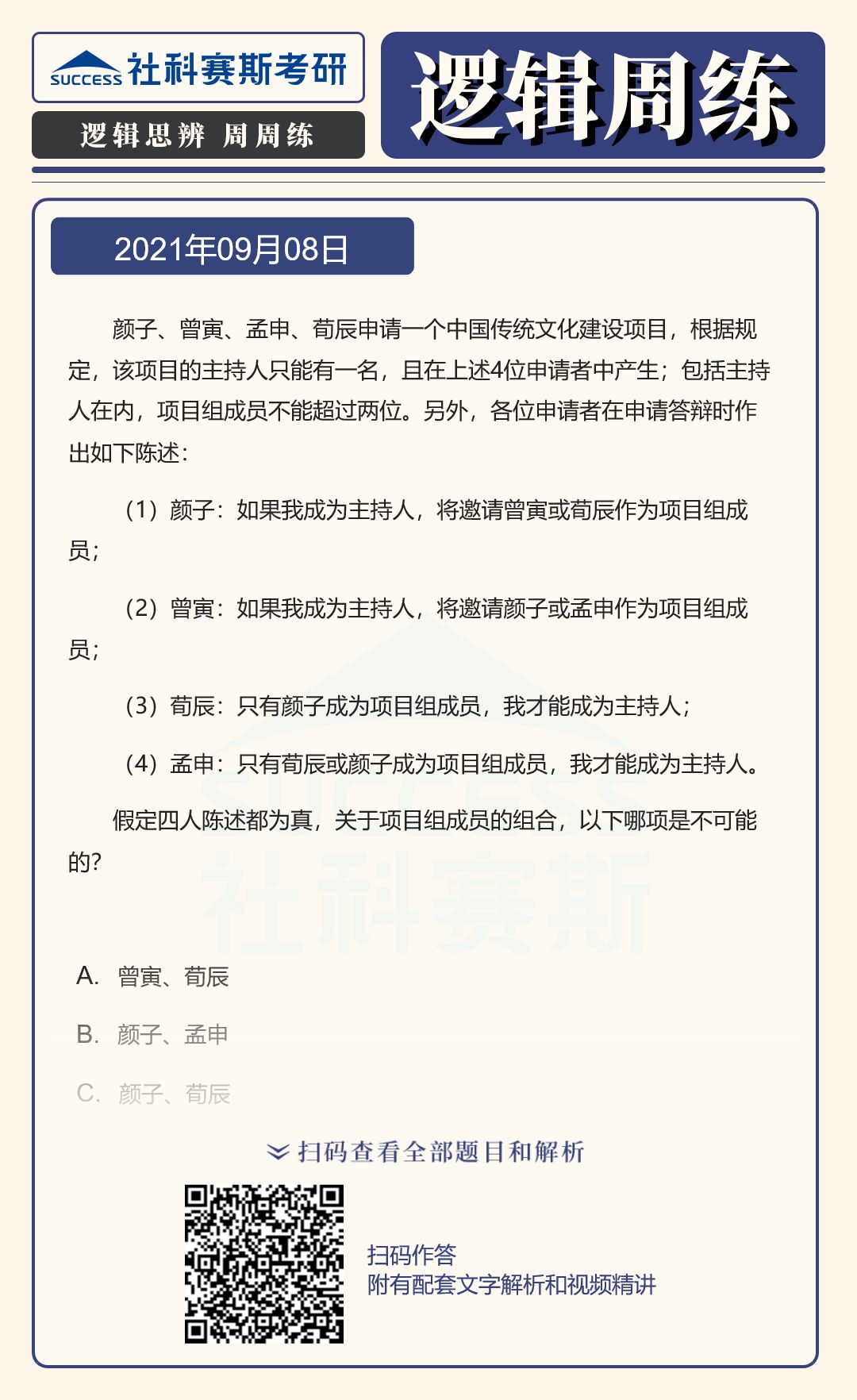 導(dǎo)讀:邏輯題型是管理類聯(lián)考考試中的必考題型,也是MBA聯(lián)考復(fù)習(xí)中的重要部分,社科賽斯MBA備考網(wǎng)小編整理了“2022MBA邏輯:2022MBA聯(lián)考邏輯習(xí)題及答案解析(9月8日)”的內(nèi)容,希望能對廣大考生有所幫助。