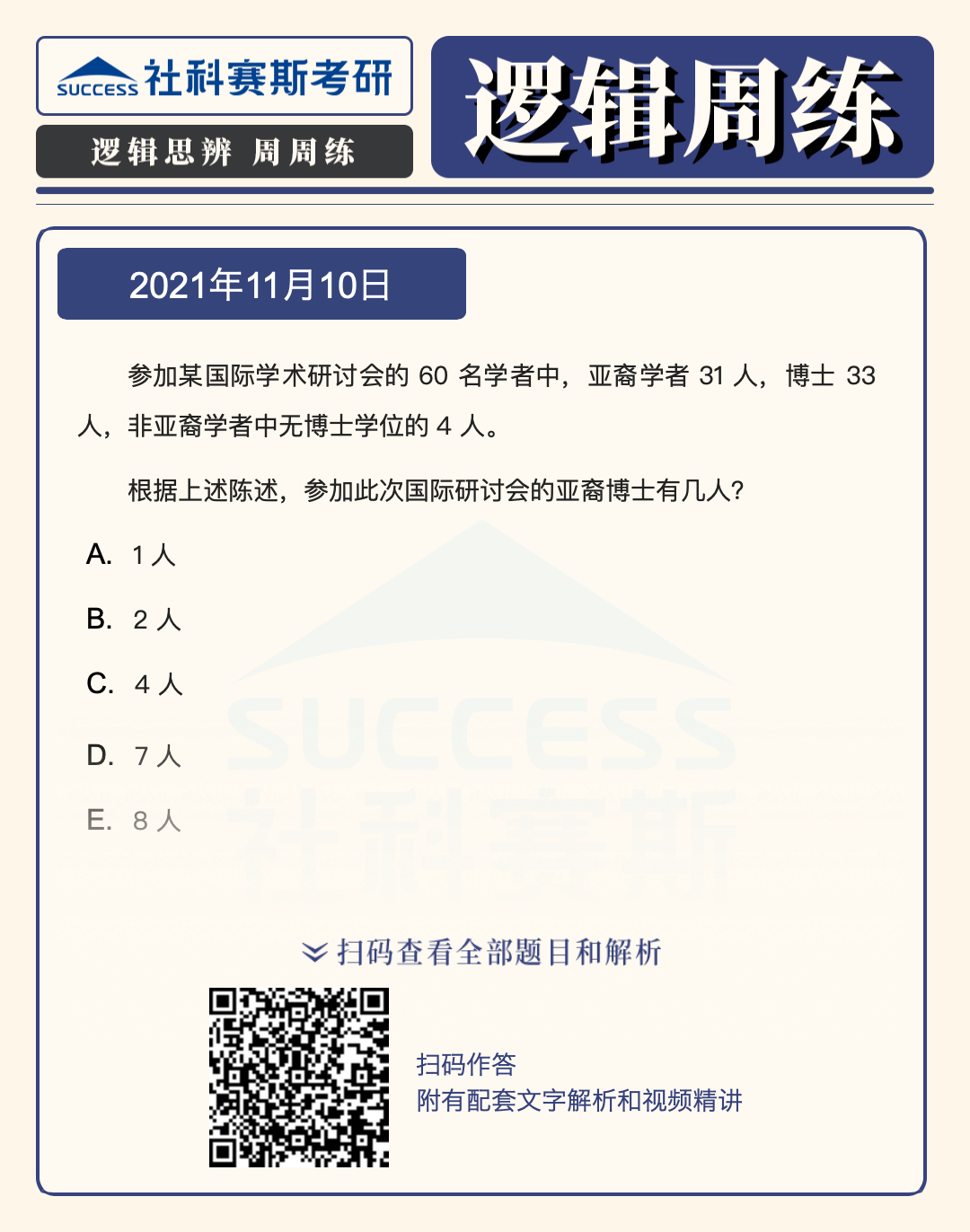以上就是“2022MBA邏輯:2022MBA聯(lián)考邏輯習(xí)題及答案解析(11月10日)”的全部內(nèi)容,更多邏輯精選習(xí)題,請(qǐng)持續(xù)關(guān)注社科賽斯MBA備考網(wǎng)!