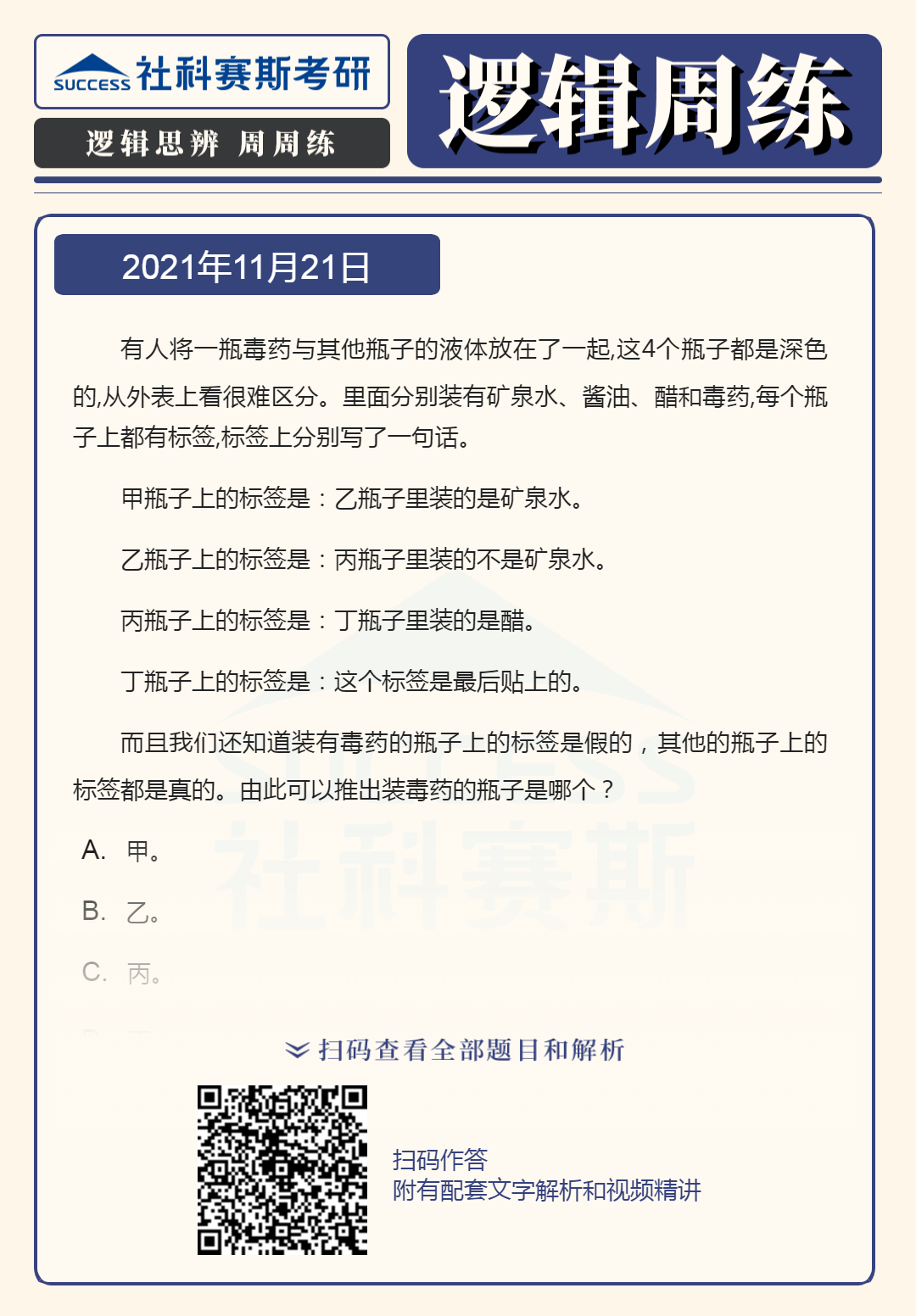 以上就是“2022MBA邏輯:2022MBA聯(lián)考邏輯習題及答案解析(11月21日)”的全部內(nèi)容,更多邏輯精選習題,請持續(xù)關(guān)注社科賽斯MBA備考網(wǎng)!