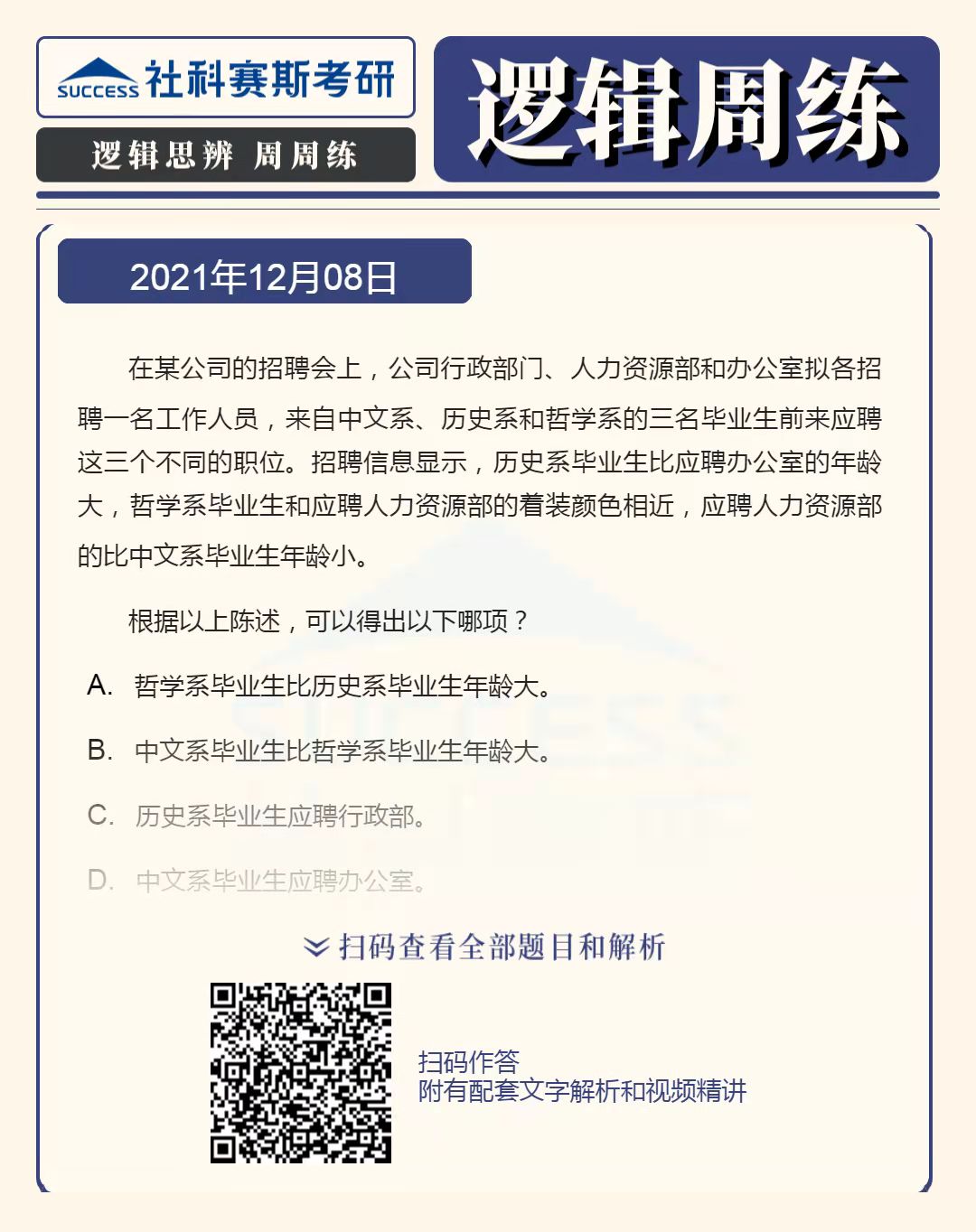 以上就是“2022MBA邏輯:2022MBA聯考邏輯習題及答案解析(12月8日)”的全部內容,更多邏輯精選習題,請持續關注社科賽斯MBA備考網!