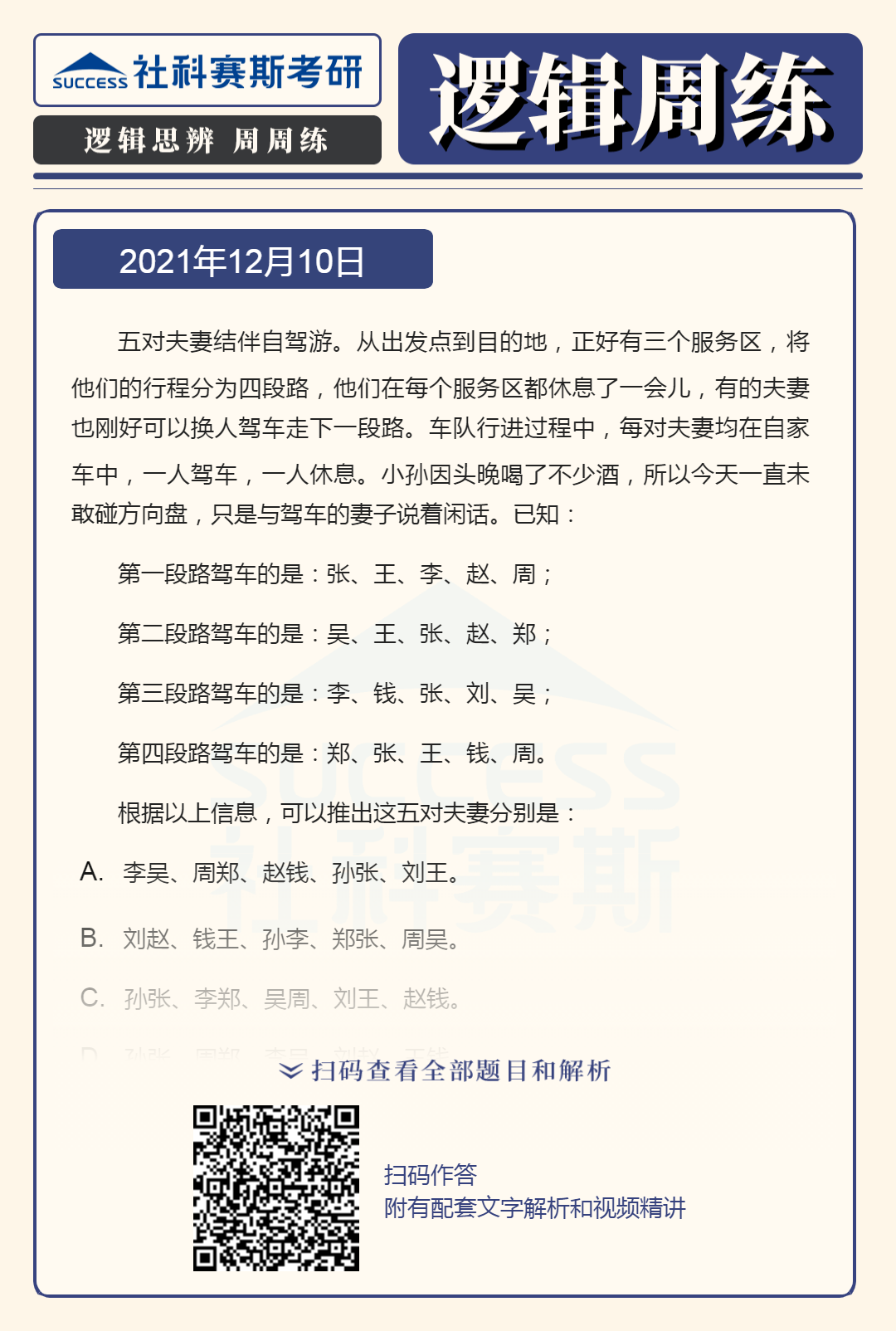 以上就是“2022MBA邏輯:2022MBA聯考邏輯習題及答案解析(12月10日)”的全部內容,更多邏輯精選習題,請持續關注社科賽斯MBA備考網!