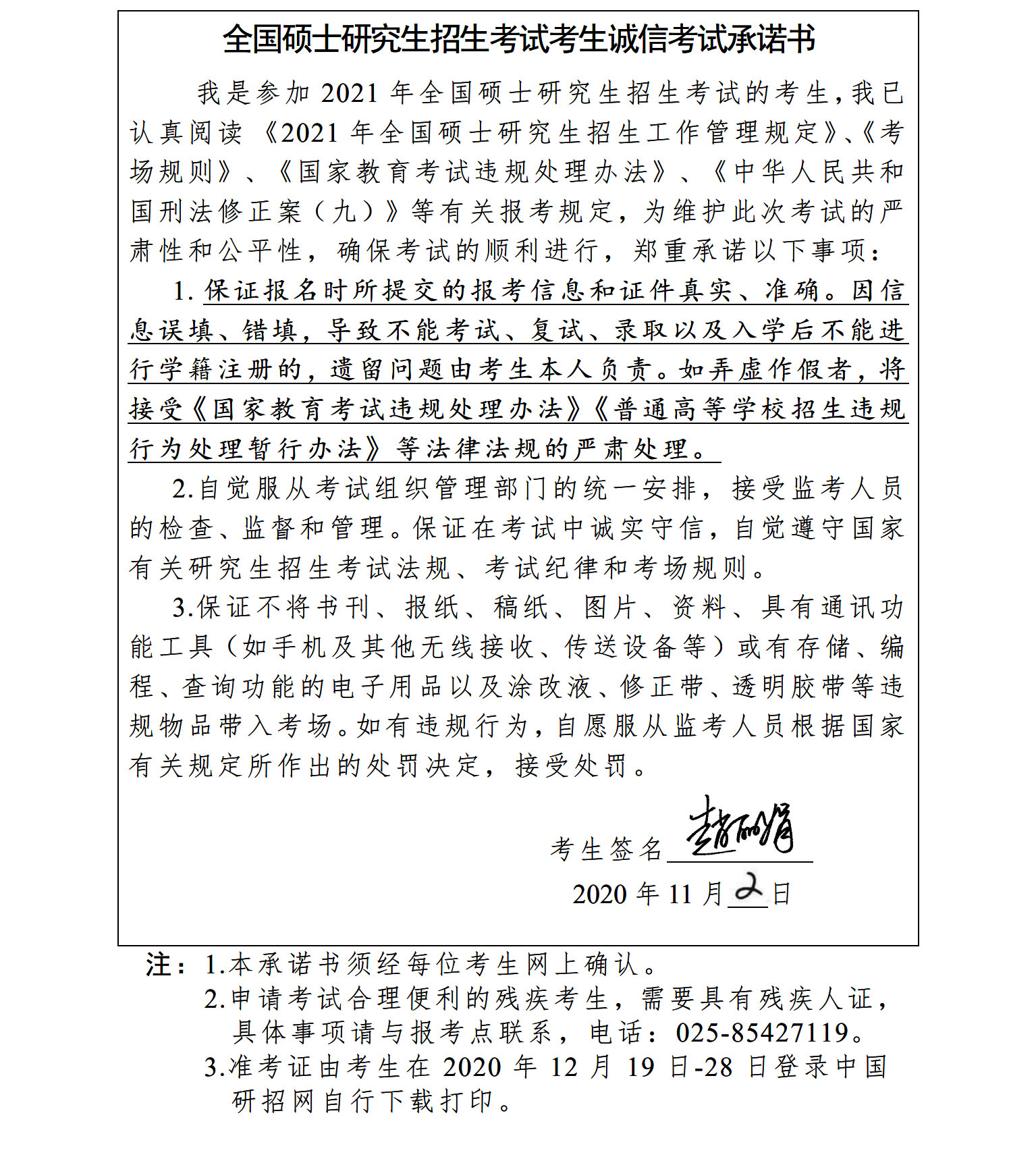 2.考生須認真閱讀報考點公告及簽定《考生誠信考試承諾書》。
