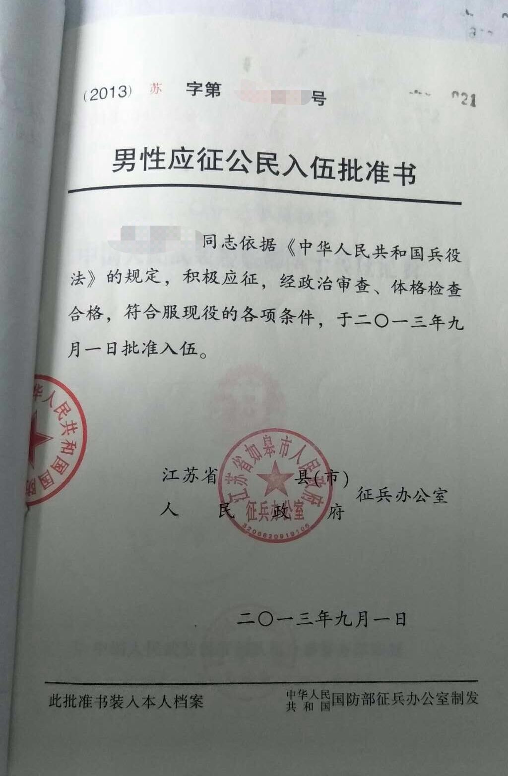 入伍批準(zhǔn)書照片示例