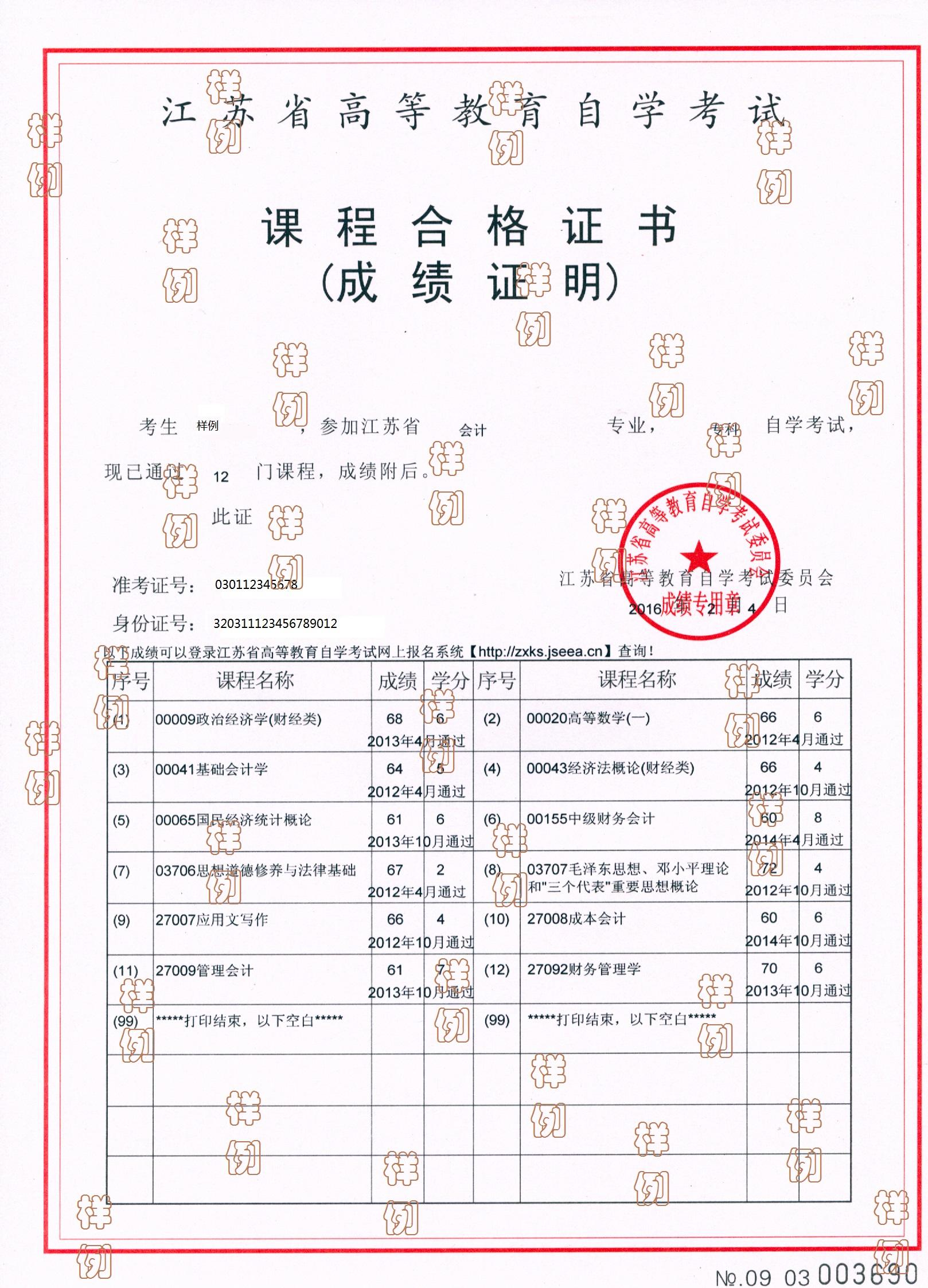 省級高等教育自學(xué)考試辦公室成績證明照片示例