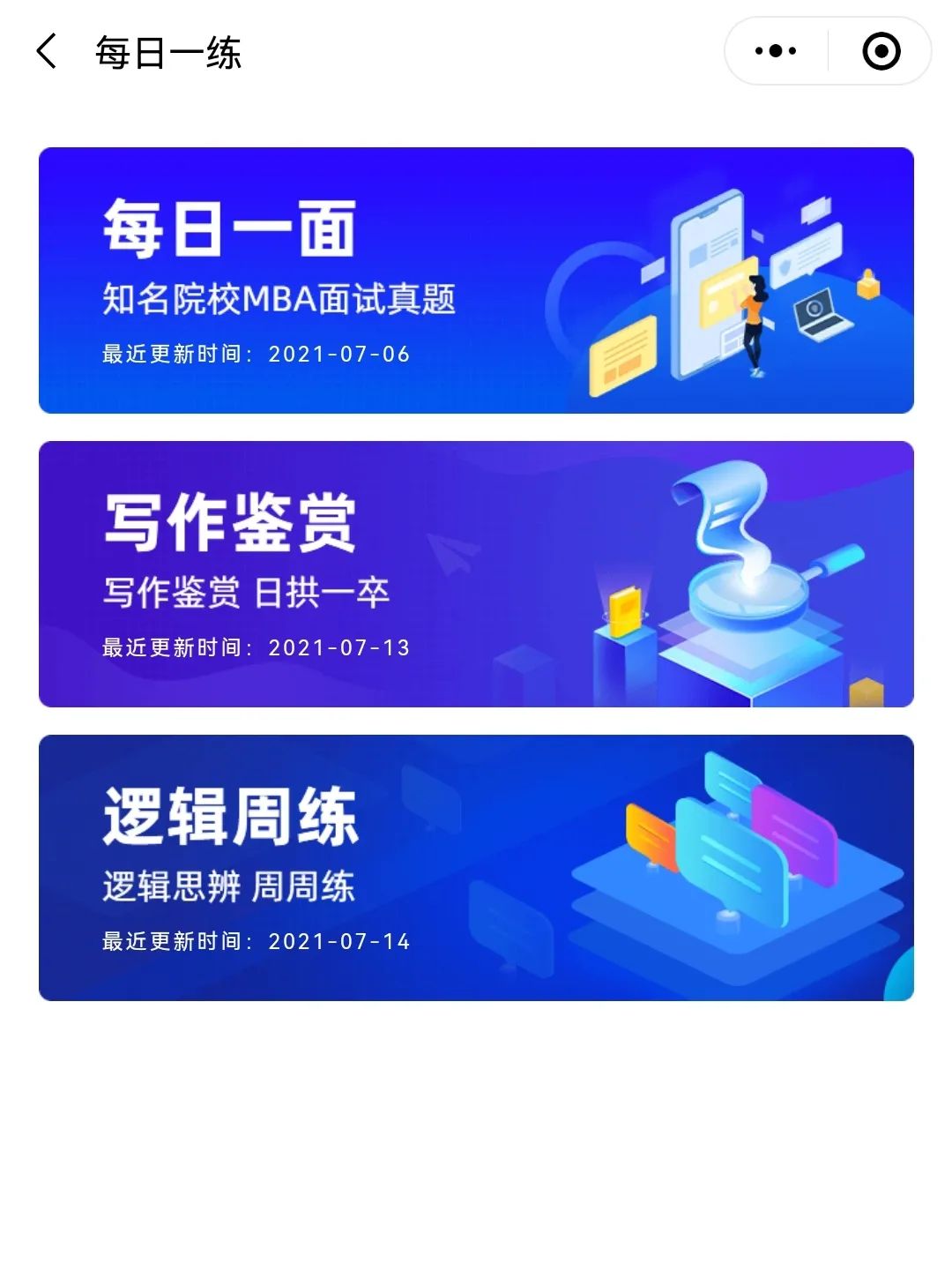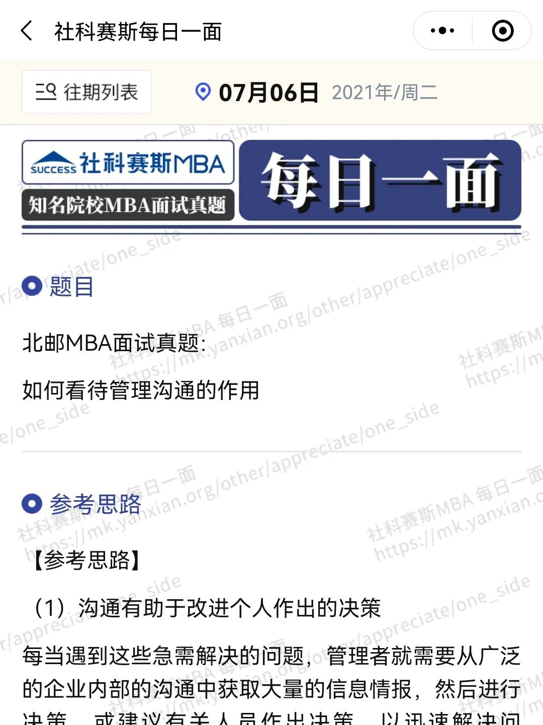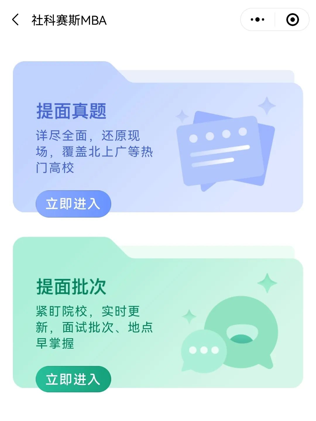 備考MBA同樣需要大量的題型積累,社科賽斯MBA小程序定期更新面試、寫作、邏輯等經典題目,幫助考生充分利用碎片時間,積累題型、穩步提分。