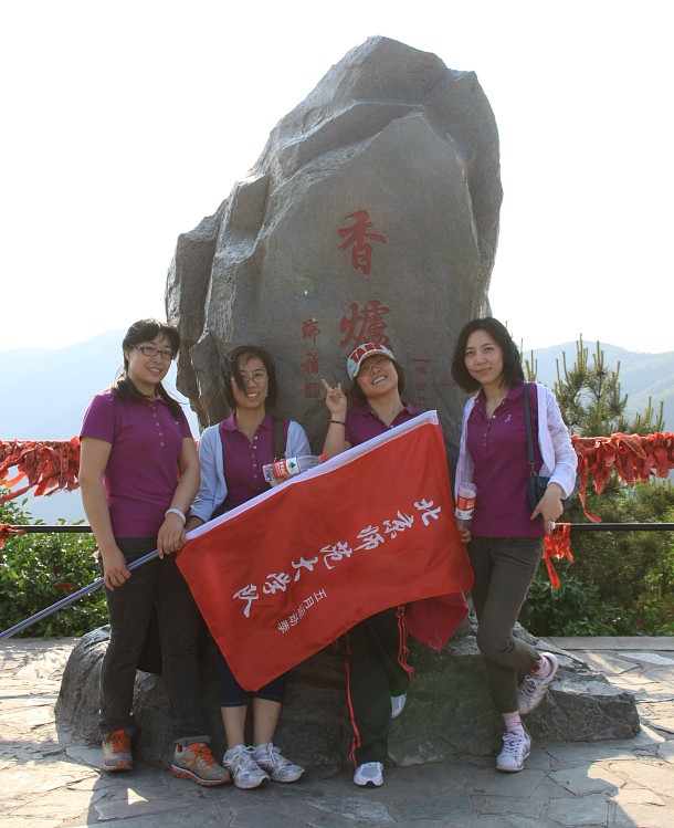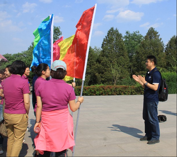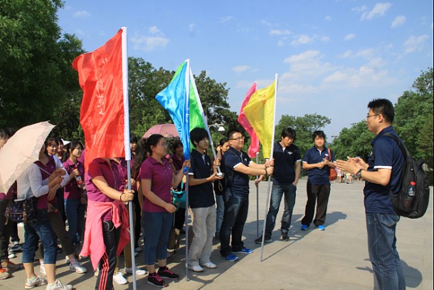 登山以小組團隊競賽模式來進行游戲,不同小組以不同顏色旗幟來區分。粉色是社科賽斯1隊,黃色是社科賽斯二隊,綠色是中國MBA教育網隊,藍色是社科賽斯天津校區分隊,紅色是北京師范大學隊。