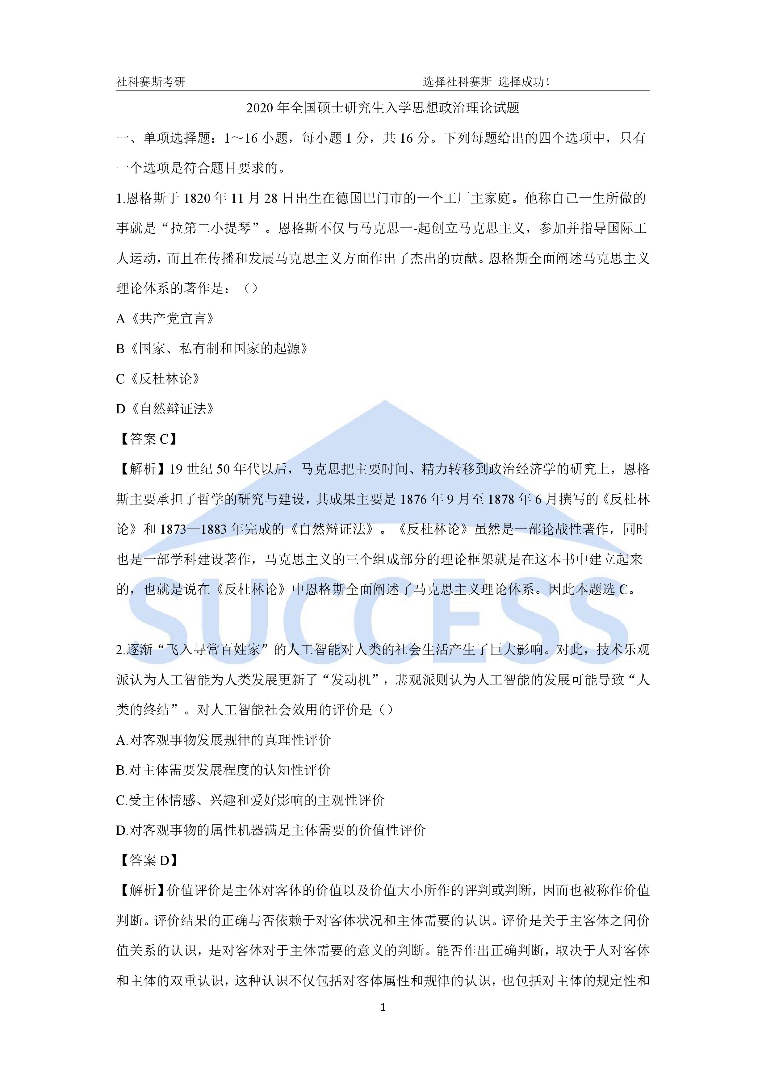 相關(guān)熱詞搜索: 考研真題 2020年考研思想政治理論真題 2020年考研思想政治理論答案