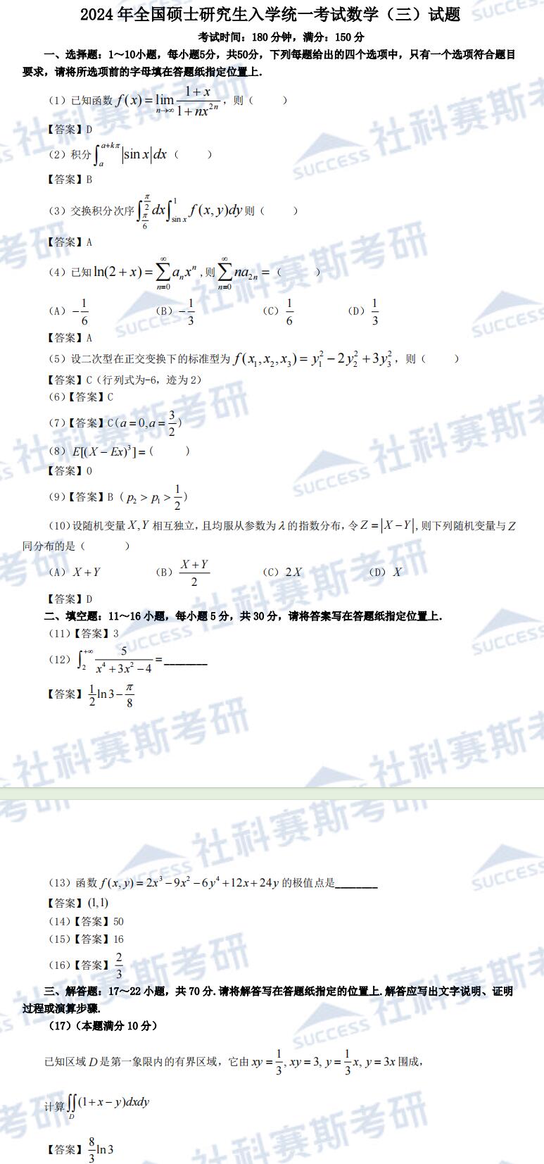 今天為大家整理了“2024考研:2024考研數(shù)學(xué)三真題答案及解析”,看看你“對”了沒!