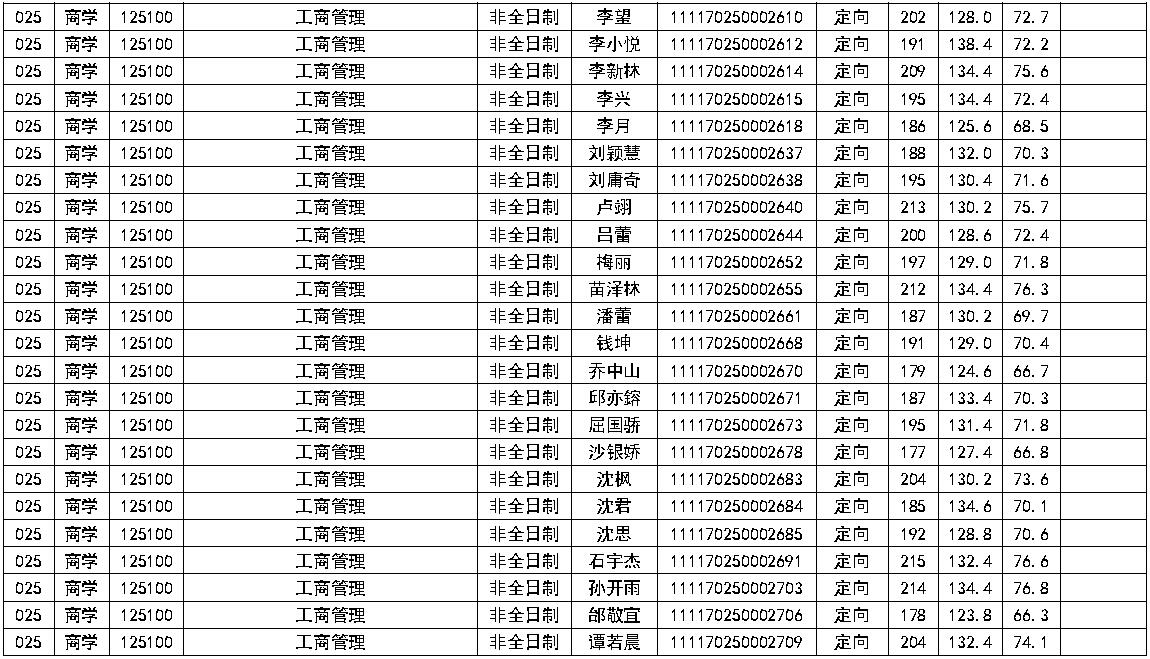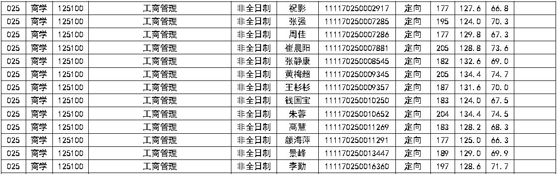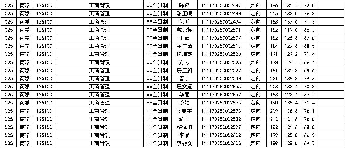 MBA-揚州大學工商管理專業擬錄取名單公示: