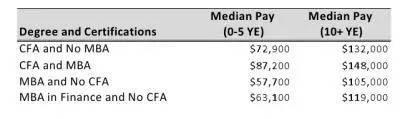 MBA經常作為想要轉行到金融的跳板,其出路會更廣, 但專業針對性沒有CFA那么強,簡單來說,如果你取得了名校的MBA學位,你幾乎可以從事任何類型的工作,除了特別要求CFA的Portfolio Management行業和Equity Research行業。