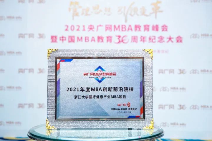 三十年櫛風(fēng)沐雨,三十年春華秋實(shí)。為慶祝中國(guó)MBA教育三十周年華誕,12月24日,“2021央廣網(wǎng)MBA教育峰會(huì)暨中國(guó)MBA教育三十周年紀(jì)念大會(huì)”在北京隆重召開。來自國(guó)內(nèi)外各界領(lǐng)導(dǎo)、優(yōu)秀商科院校代表、行業(yè)領(lǐng)軍人物、企業(yè)大咖等共此盛時(shí)、共襄盛典,總結(jié)分享優(yōu)質(zhì)商科教育經(jīng)驗(yàn)與思想,多視角、多維度探討新時(shí)代中國(guó)商科教育的發(fā)展與變革,為中國(guó)經(jīng)濟(jì)騰飛貢獻(xiàn)管理智慧與力量。本次大會(huì)上,浙江大學(xué)管理學(xué)院醫(yī)療健康產(chǎn)業(yè)MBA項(xiàng)目憑借優(yōu)秀的建設(shè)成果,榮獲“2021年度MBA創(chuàng)新前沿院校”,為商科教育賦能醫(yī)療健康領(lǐng)域樹立起了榜樣標(biāo)桿!