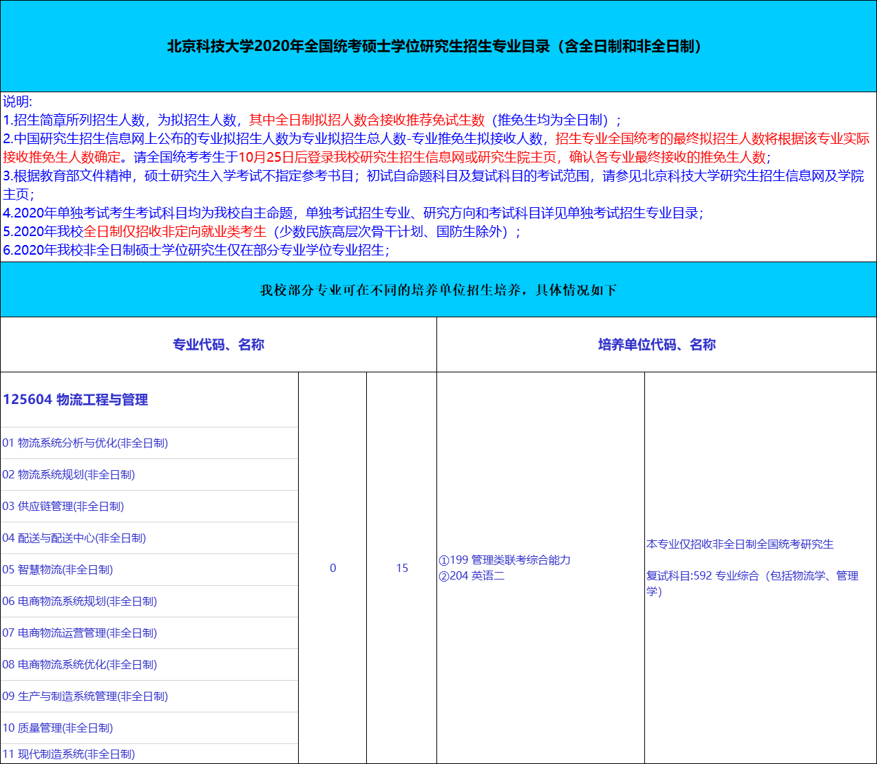 首頁> 工程管理碩士 > MEM動(dòng)態(tài) > 北京科技大學(xué)2020年MEM(物流工程和管理)研究生專業(yè)目錄