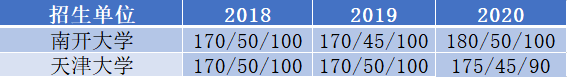 2020年,南開大學的分數線高于國家線5分,天津大學依舊與國家線持平。估計往后的分數線也會在國家線附近徘徊。