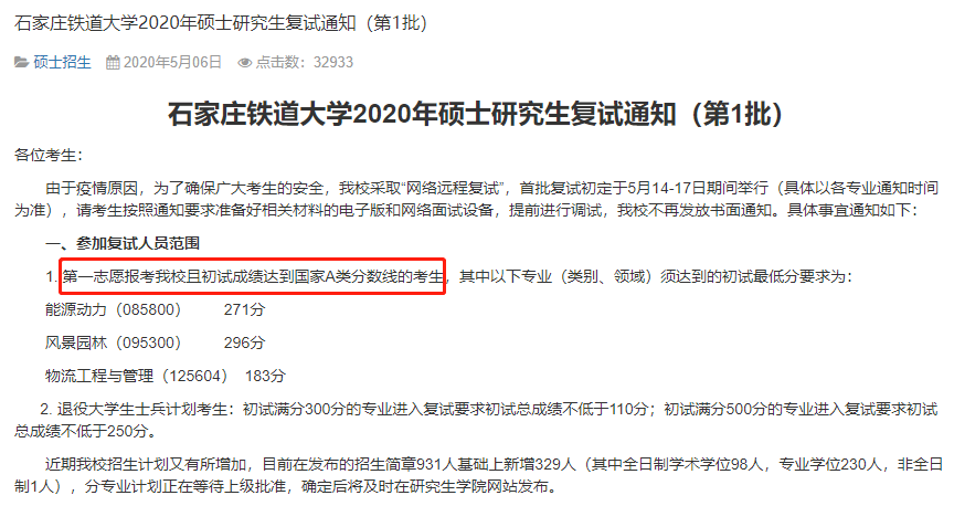 石家莊鐵道大學2020年MEM(工業工程與管理)復試基本分數線:175/88/44