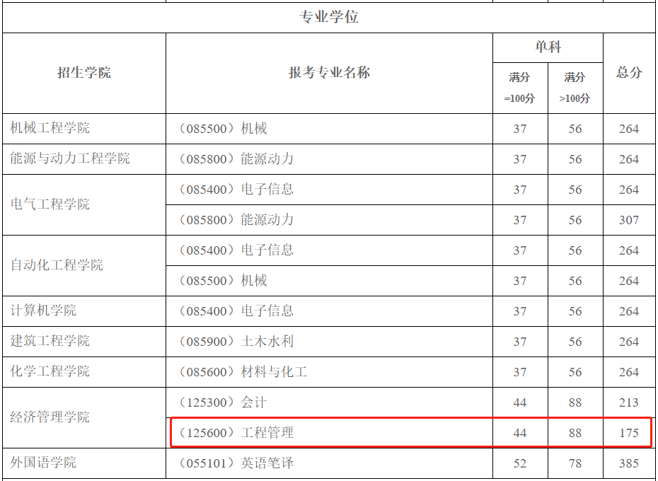東北電力大學2020年MEM(工程管理)復試基本分數線:175/88/44