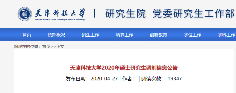 原標題:天津科技大學2020年碩士研究生調劑信息公告