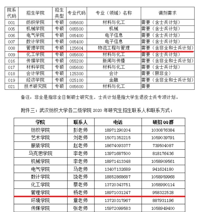原標題:武漢紡織大學2020年碩士研究生招生調(diào)劑公告