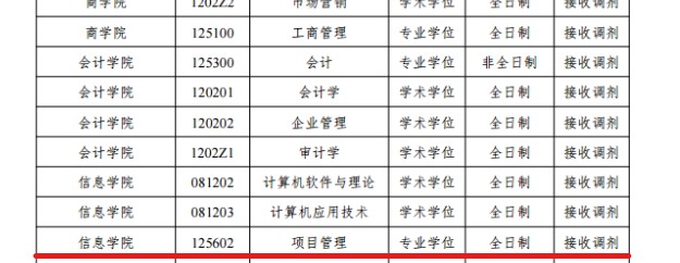 (3)第一志愿報考工商管理、公共管理、工程管理(項目管理)、旅游管理、會計、圖書情報、審計專業(yè)學(xué)位的考生可相互調(diào)劑,但不得調(diào)入其他專業(yè);其他專業(yè)考生也不得調(diào)入以上 7 個專業(yè)。調(diào)入工商管理、公共管理、工程管理(項目管理)、旅游管理專業(yè)的考生需滿足高職高專畢業(yè)或大學(xué)本科結(jié)業(yè)滿 5 年、本科畢業(yè)滿 3 年或研究生畢業(yè)滿 2 年(截止 2020 年 9 月 1 日)。