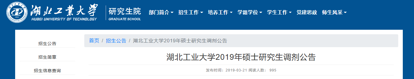 導讀:2020考研初試結束之后,考生們在準備金融碩士復試的同時,也有考生在準備金融碩士調劑。為了幫助大家做好金融碩士調劑準備,小編給大家整理了“金融碩士接受調劑的院校 | 湖北工業大學2019年接收金融碩士調劑的通知”,希望對需要調劑的同學有所幫助,以下為調劑通知: