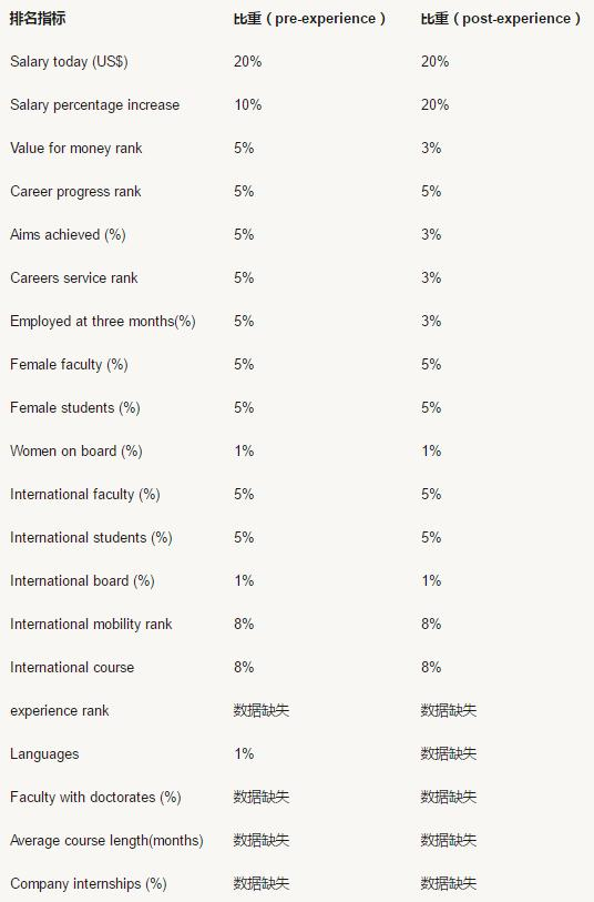 依照慣例,F(xiàn)T排名對入選大學有嚴苛要求:必須有4年以上開課歷史(FT會對畢業(yè)3年的學生進行調查),課程必須為全日制,每年必須有30名以上的畢業(yè)生,同時,這些商學院必須獲得AACSB或者Equis認證。