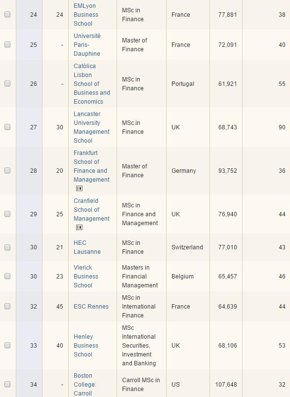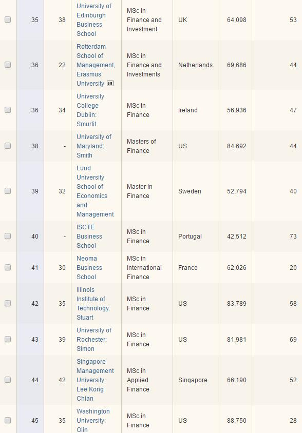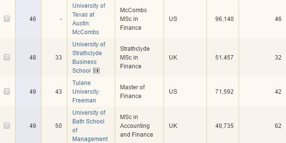 接下來我們來看看無需工作經(jīng)驗就能讀的金融碩士大學Top50排名: