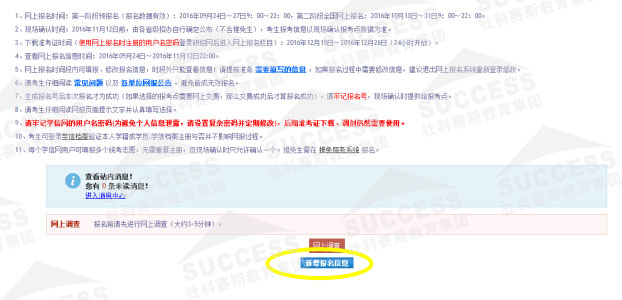3、 查看網(wǎng)上報(bào)名信息時(shí)間:2016年09月24日——2016年11月12日22:00。