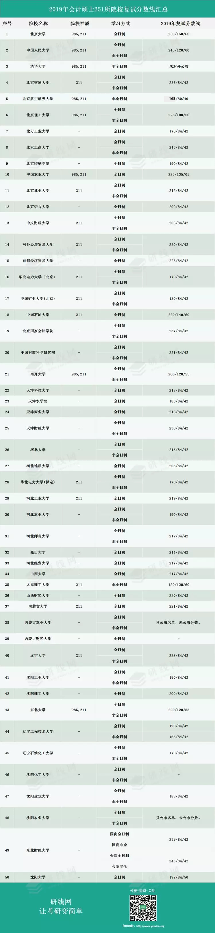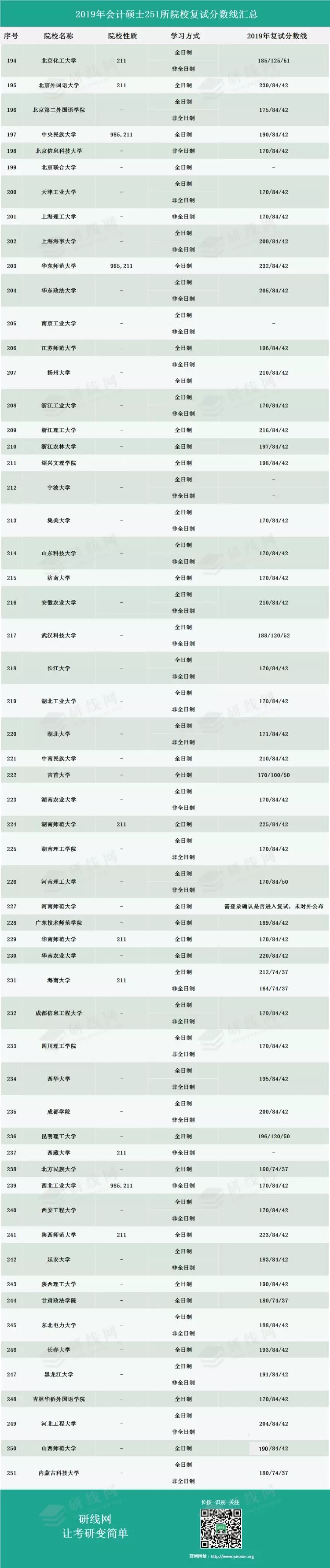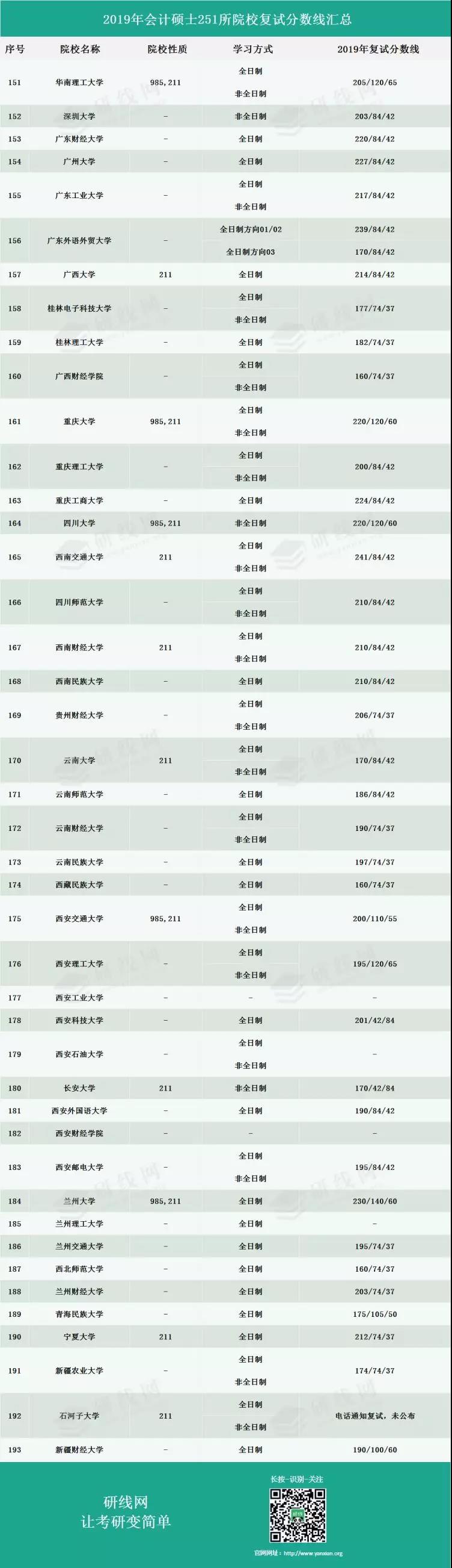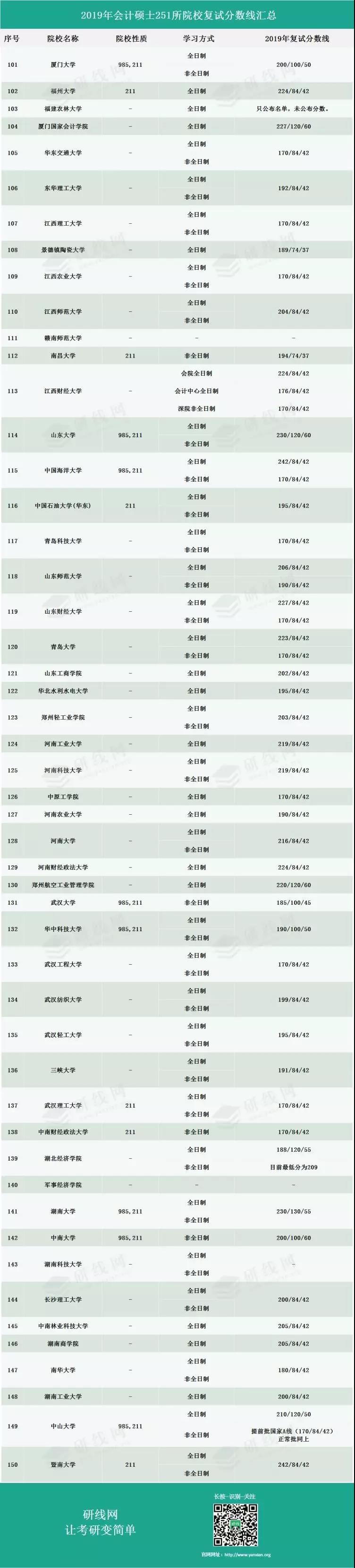 導(dǎo)讀:MBA備考網(wǎng)今天為大家整理了“2019年會計專碩(MPAcc)251所院校復(fù)試分?jǐn)?shù)線匯總”,希望能幫助到各位報考會計專碩的小伙伴!