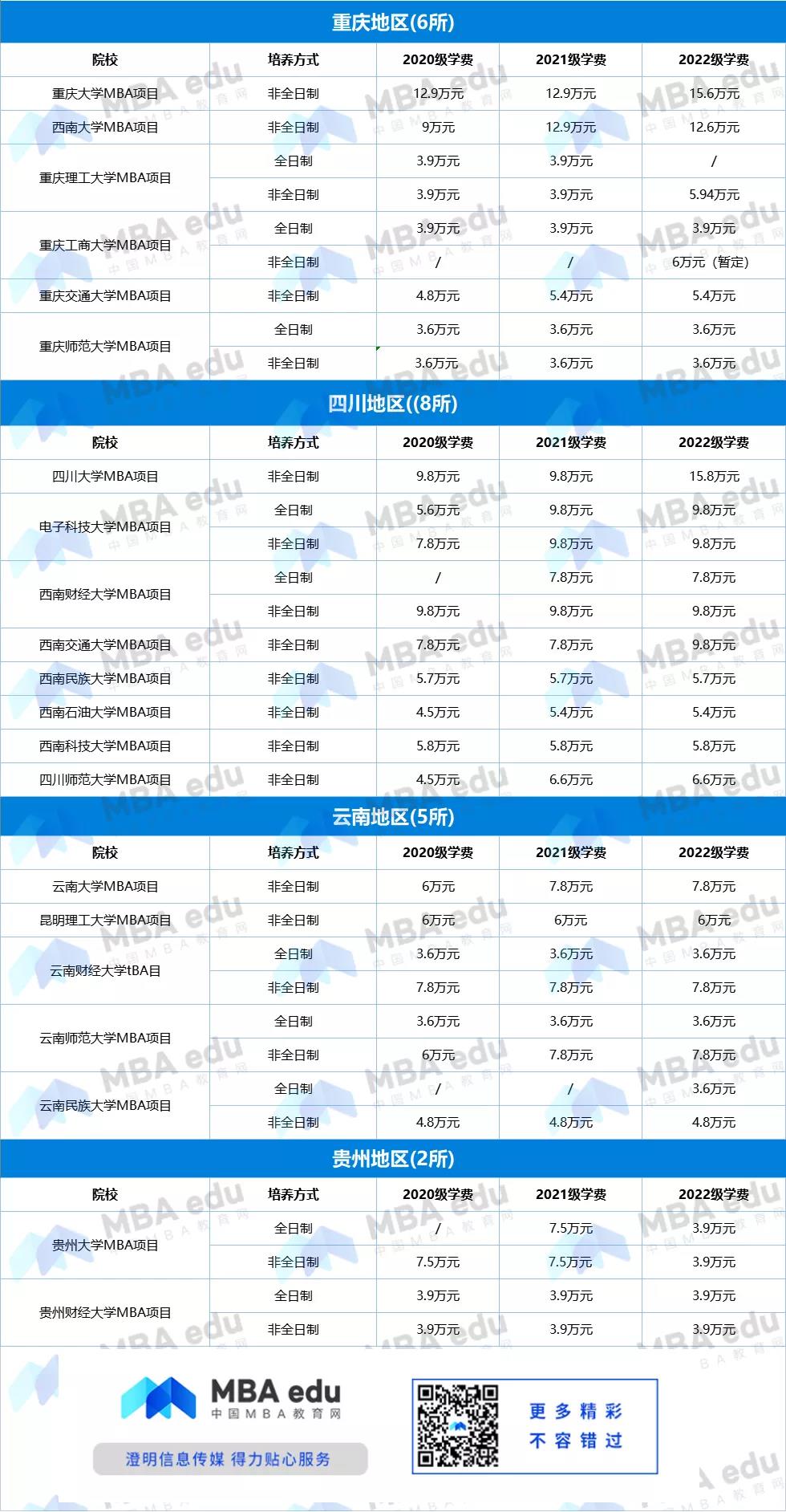 西南地區(qū)MBA近3年學(xué)費(fèi)浮動表