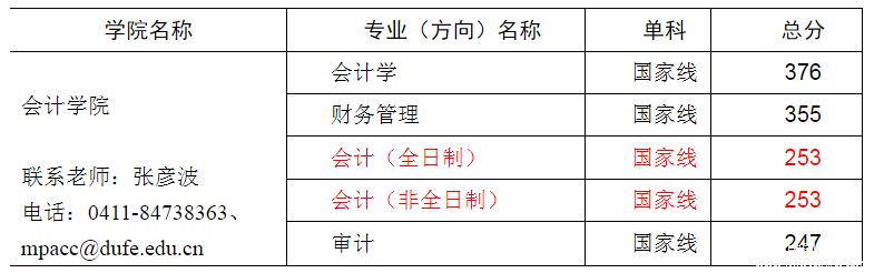 因全日制和非全日制研究生考試招生依據國家統一要求,執行相同的政策和標準。我校會計(全日制、非全日制)執行相同的復試分數線,非全日制未招滿部分接受此次全日制復試合格未被擬錄取且符合非全日制報考條件的考生調劑錄取。如仍未完成非全日制招生計劃,東北財經大學將降低復試分數線進行二次復試,接受符合條件的考生參加非全日制復試。請線下的一志愿考生保持聯系電話暢通,并隨時關注研究生院網站的通知。
