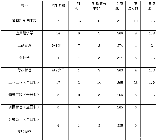 (2)擬接收3名全日制金融專碩調(diào)劑生,6名非全日制金融專碩調(diào)劑生,19名非全日制工業(yè)工程調(diào)劑生。